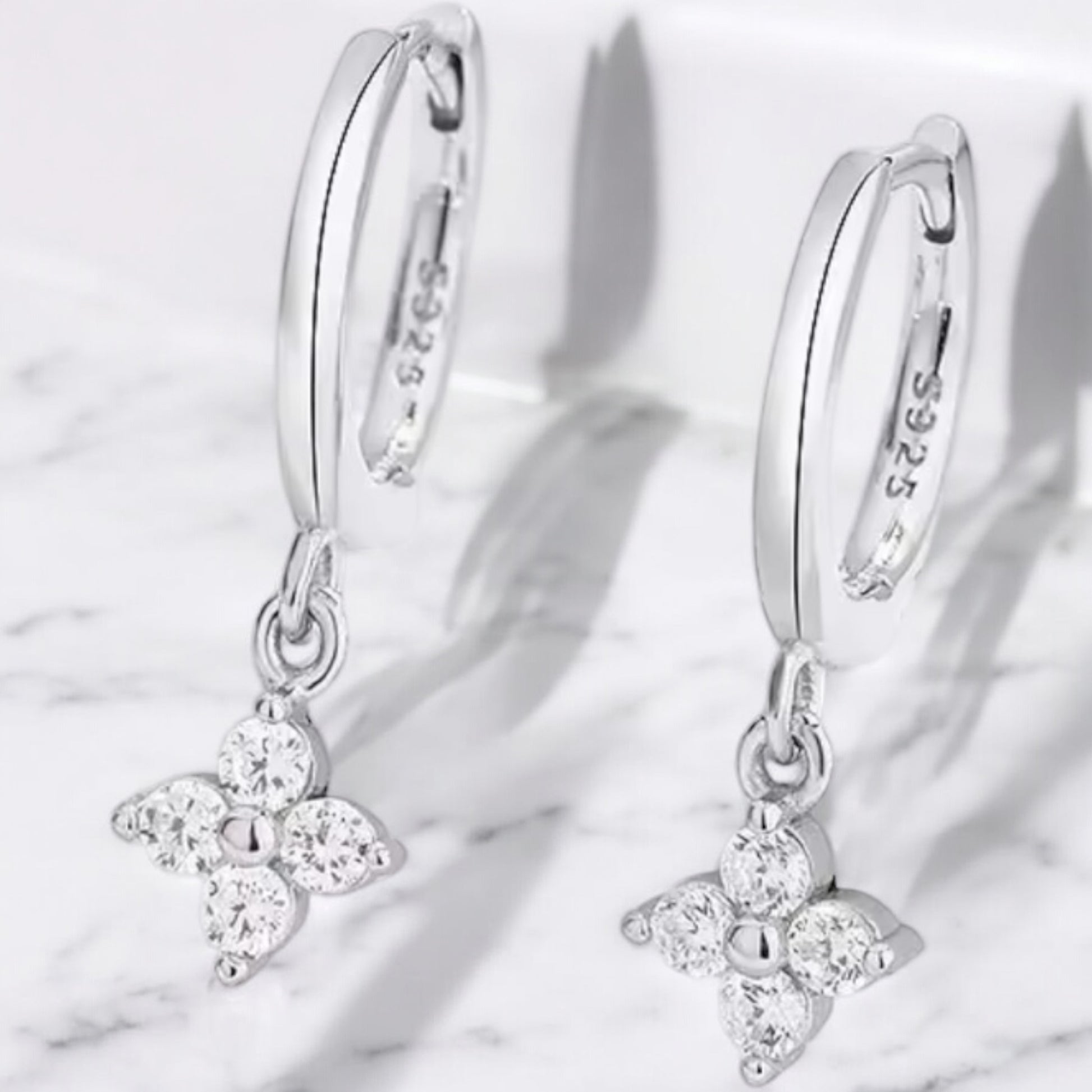 925 silver flower huggies