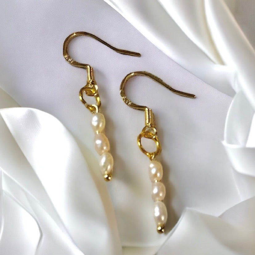 Made with mini peach rice pearls and 925 gold plated earrings.