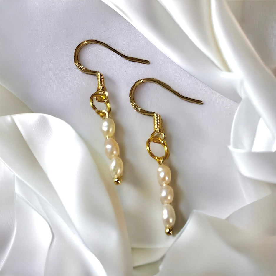 Made with tiny mini pearls and 14k gold plated earring hooks.