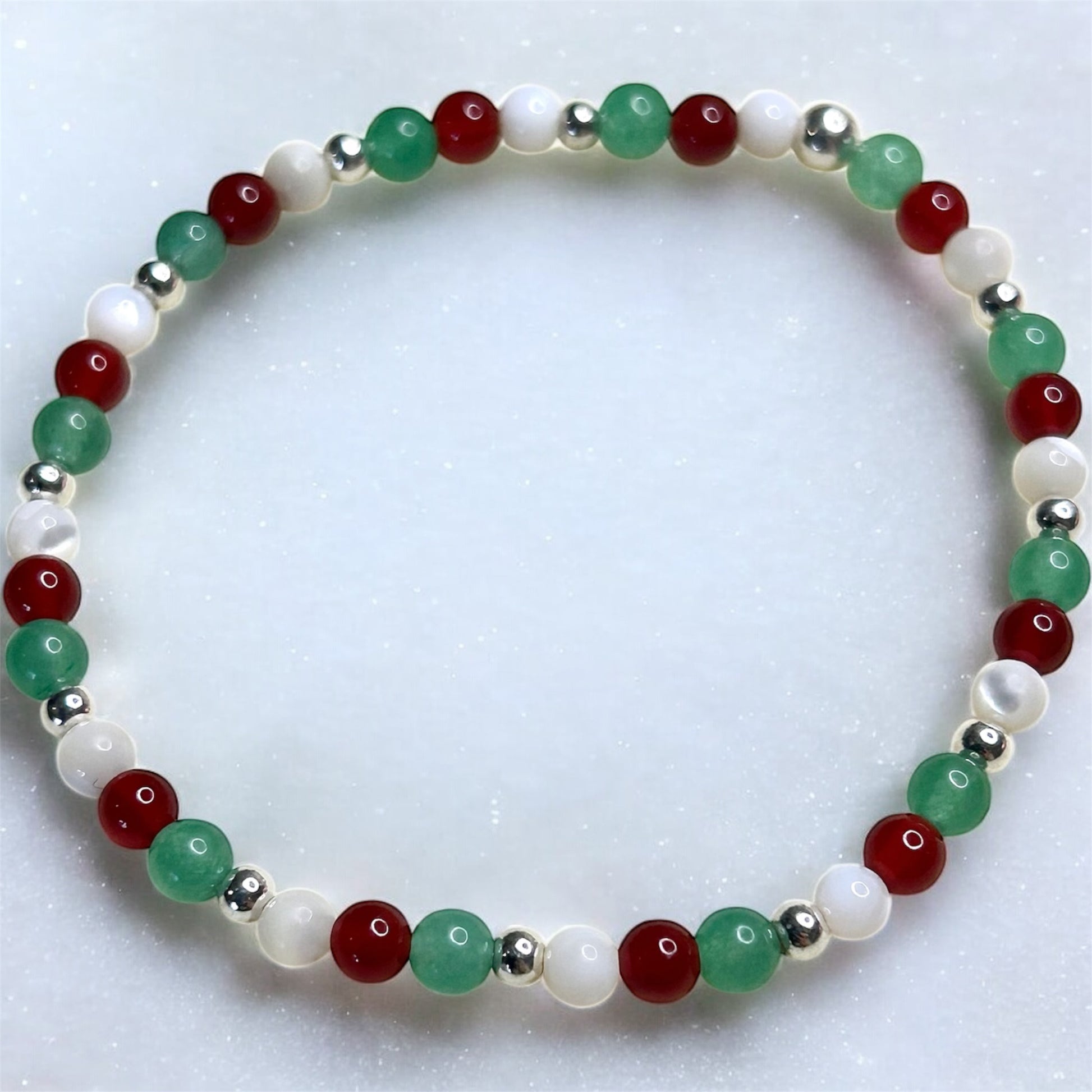 Carnelian, green aventurine & mother of pearl gemstone bracelet
