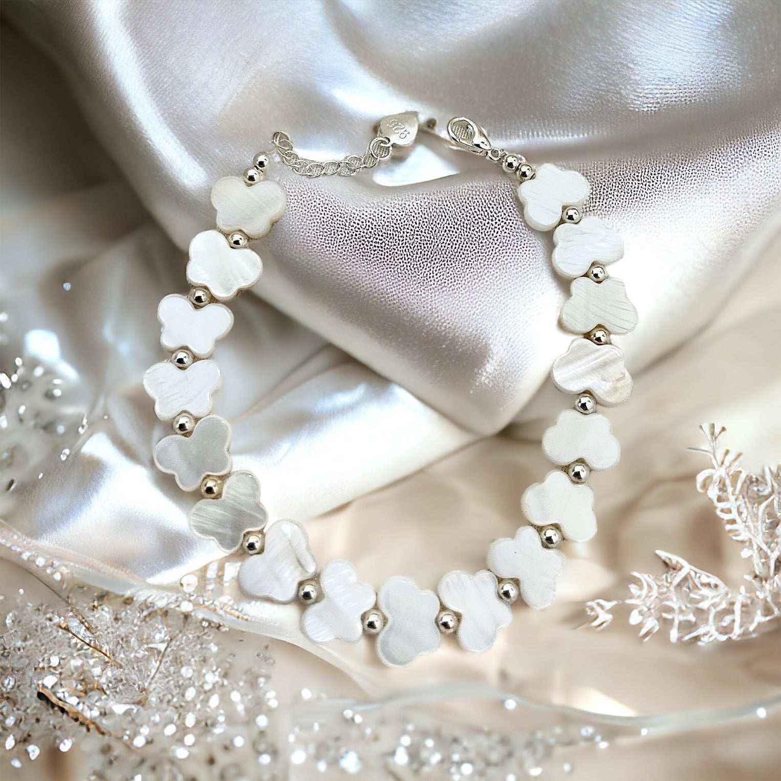 Mother of pearl beaded bracelet with 925 silver beads and fixings.