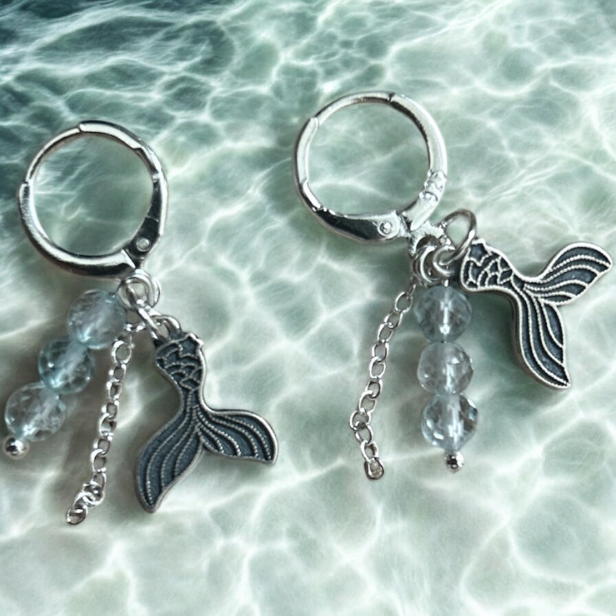 Made with blue topaz & 925 mermaid tail charm & fixings.