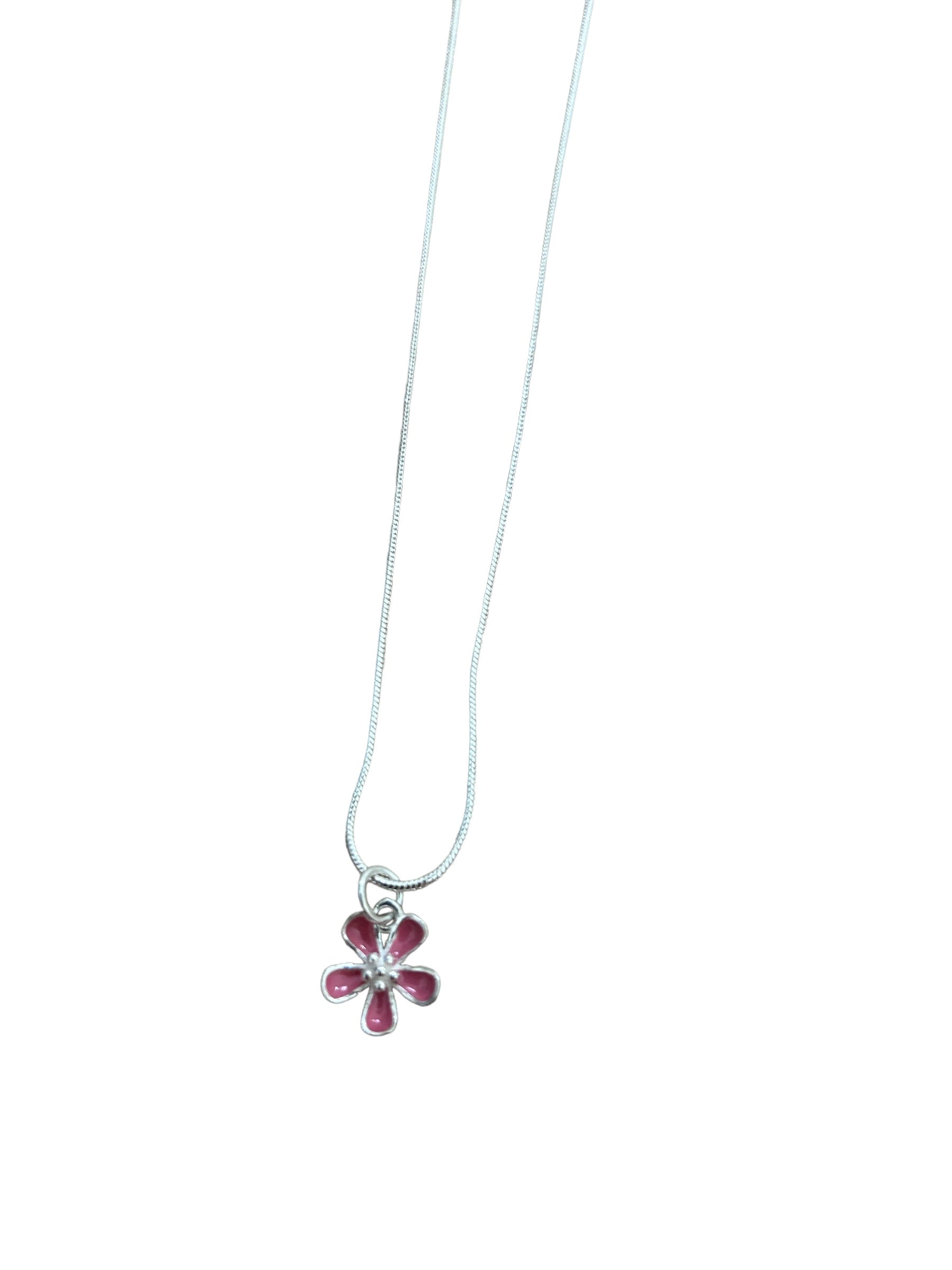 Pink flower sterling silver necklace