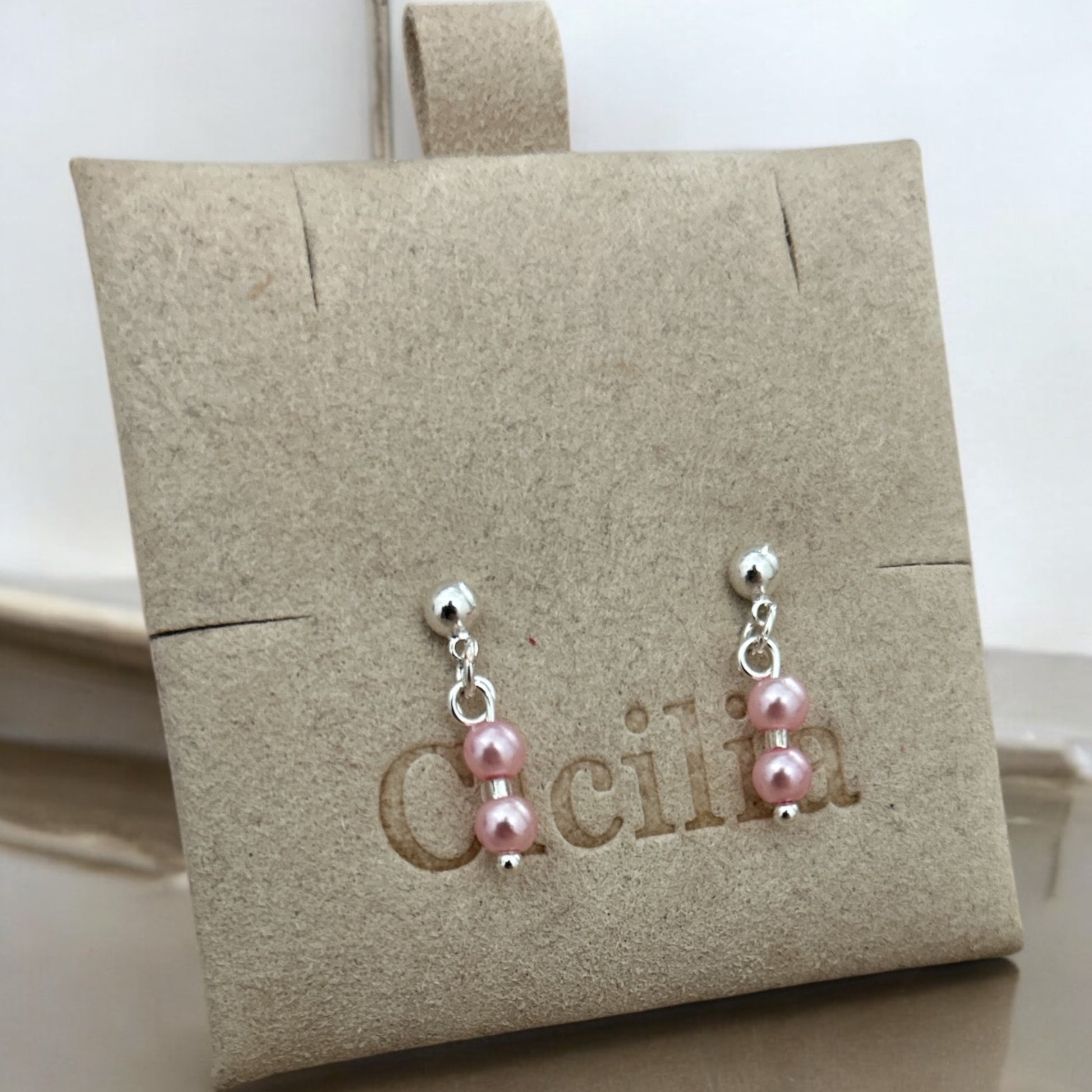 Pink pearl 925 dangle stud earrings