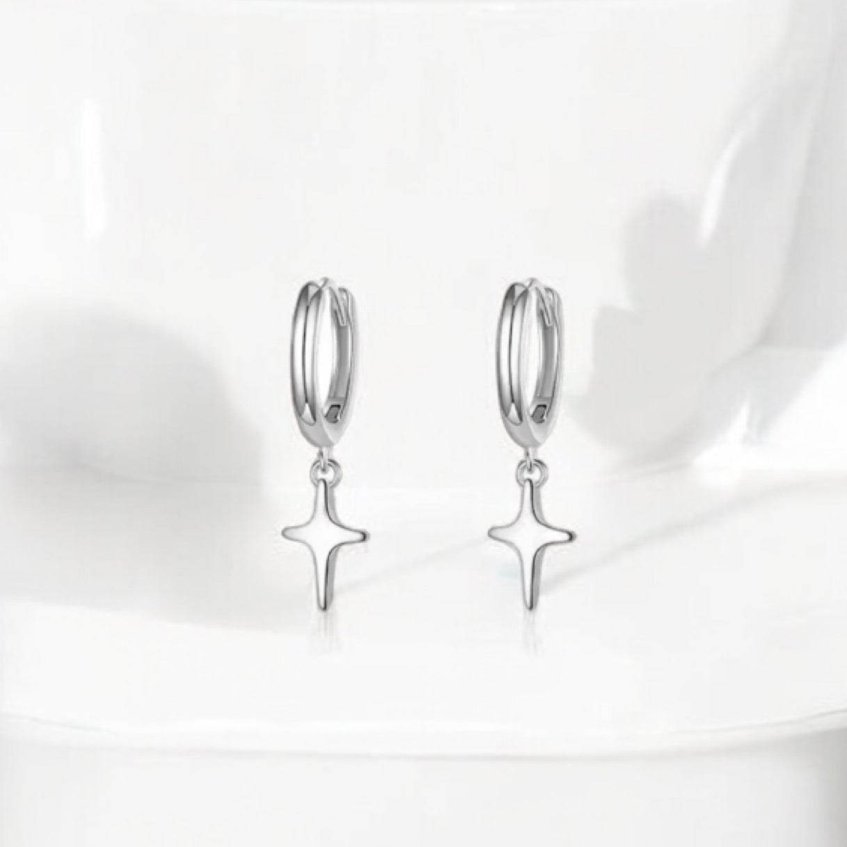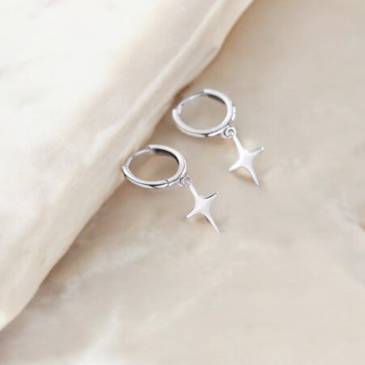Sterling silver star huggies.