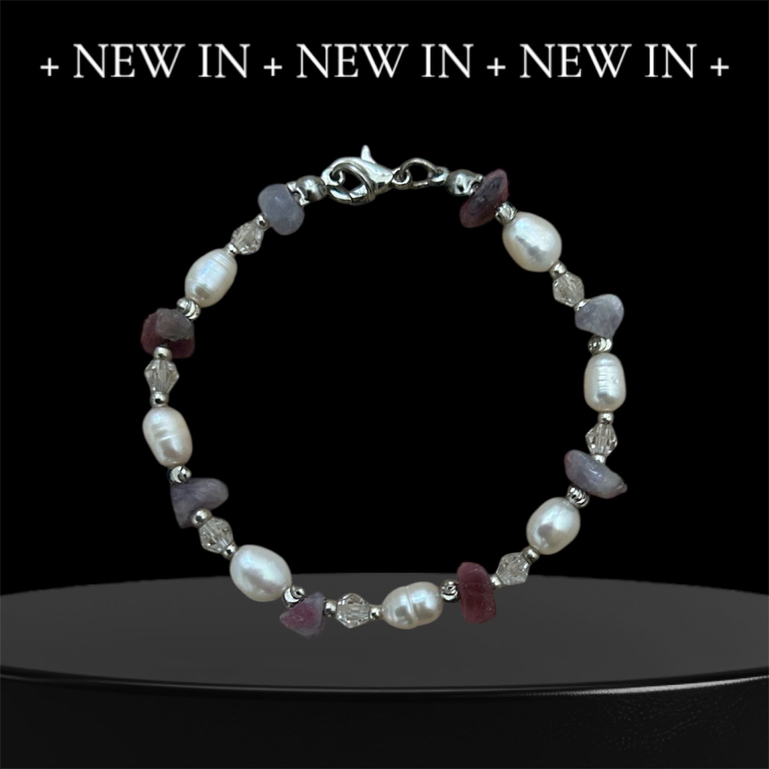 Made with fresh water pearls and unicorn Jasper chip beads.