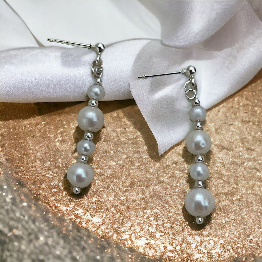 Waterfall pearl and sterling silver earrings