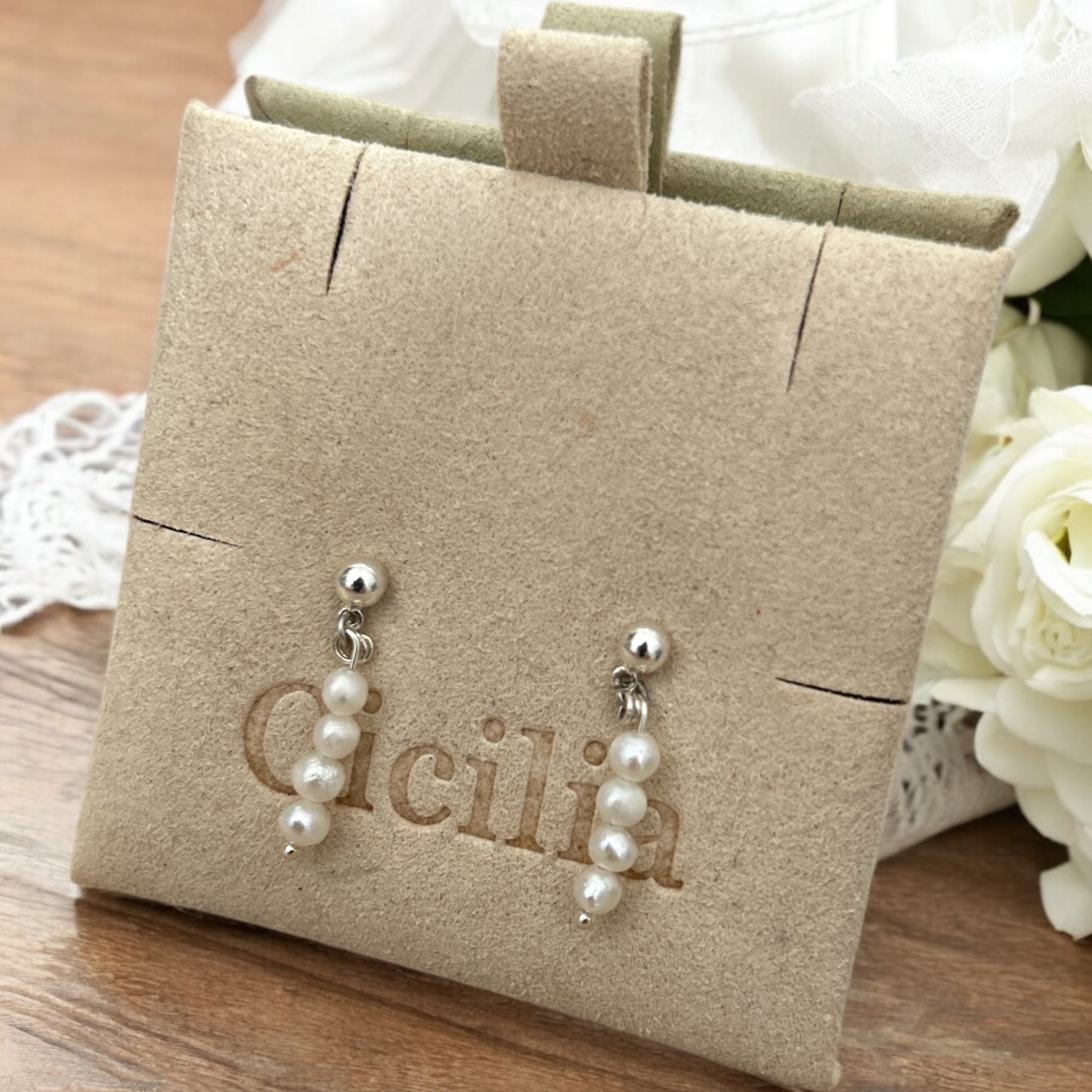 The Zara earrings are a 3 pearl drop stud earring made with 925 silver and fresh water pearls.