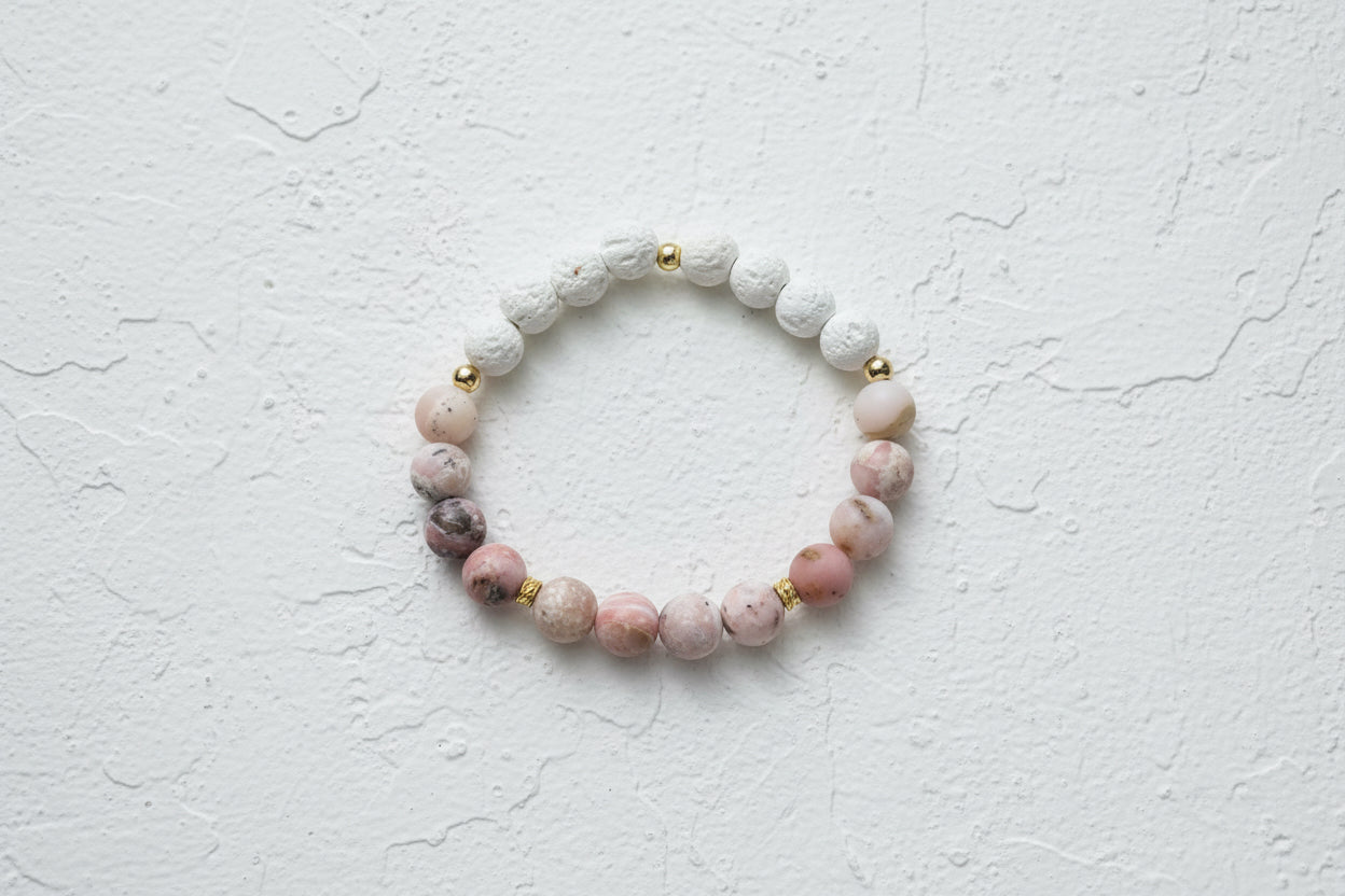Matt pink opal & white lava beaded bracelet