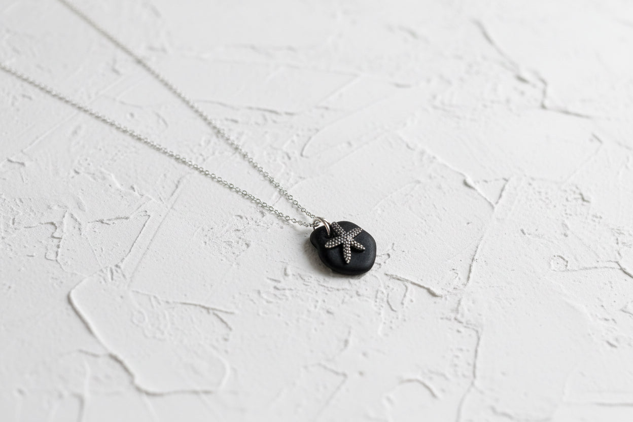 Pirate sea glass & dark sterling silver necklace