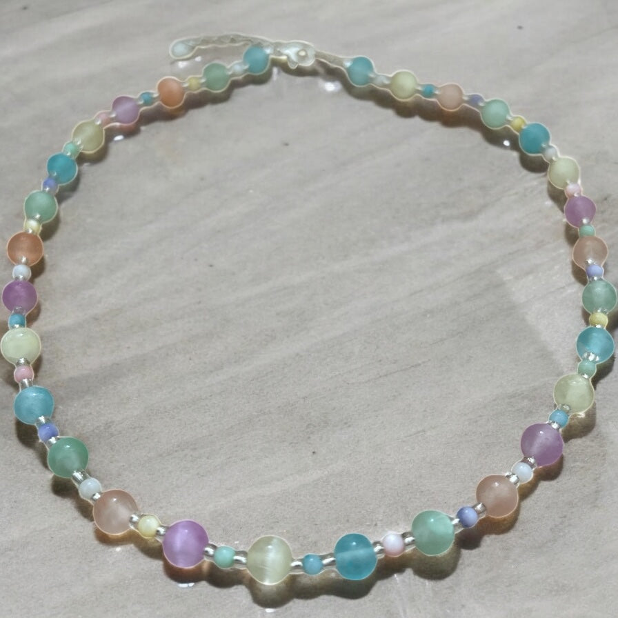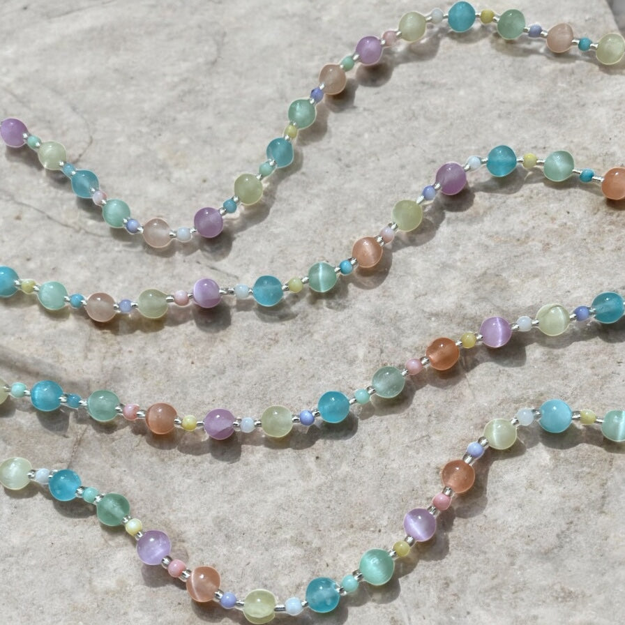 Made with colourful selenite beads and colourful mother of pearl beads. With 925 silver clasp & fixings: